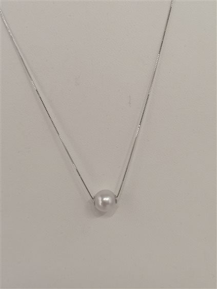 Girocollo in oro bianco 750/°°° con perla coltivata giapponese mm. 7,5/8,0