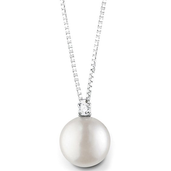 Gioiello Bliss Della Collezione Paradise. Collana In Oro Biancocon Brillanti E Perle Fiume Della Dimensione Di Mm.6. Caratura Diamanti: 0,01 Colore Del Diamante: G/H Con Diamante Di Colore Bianco. Lunghezza Catena Cm 45, Linea Perle