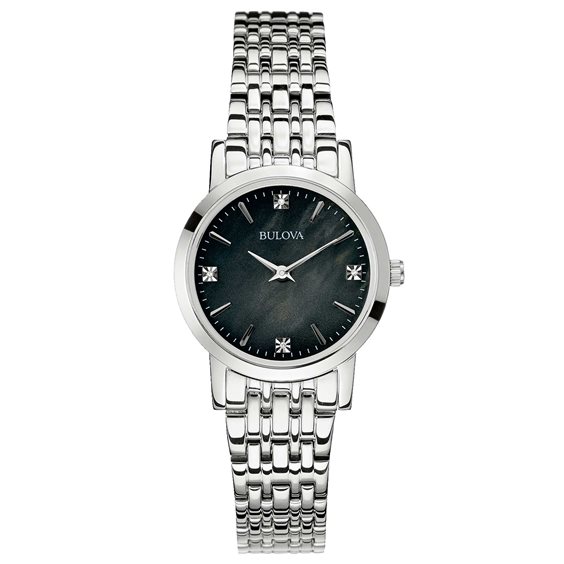 Orologio donna solo tempo. Cassa in acciaio lucido 316L. Movimento al quarzo ore e minuti. Vetro minerale. Movimento al quarzo ore e minuti. Quadrante in madreperla nera con 4 diamanti, indici e lancette lucide. Bracciale regolabile in acciaio lucido, chiusura deployante con pulsanti. Impermeabile 3 bar (3 atm). Scatola libretto istruzioni e garanzia 3 anni Originali.