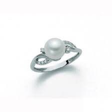 anello in oro bianco 750/°°° con perla e diamanti