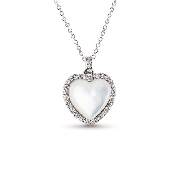 Girocollo in oro bianco con pendente in madreperla contornato da diamanti.