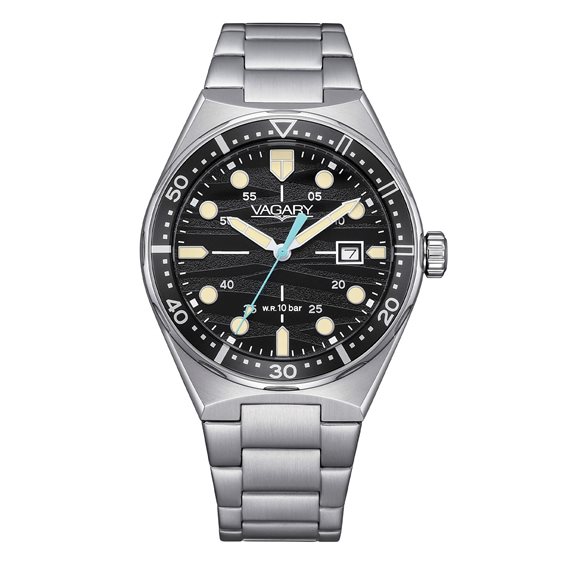 Prodotto: orologio al quarzo Vagary By Citizen uomo Aqua39 IB9-514-51 Orologio Solo Tempo da uomo di Vagary della collezione Aqua 39. Orologio con cassa in acciaio con fondo serrato a vite diametro cassa 39 mm e quadrante nero con indici applicati. . Orologio con bracciale in acciaio integrato con chiusura a pulsante. La resistenza all'acqua è di 10 atm. Movimento: movimento al quarzo citizen. . Orologio con datario. La referenza è IB9-514-51 Questo articolo verrà spedito con Scatola Originale Vagary By Citizen