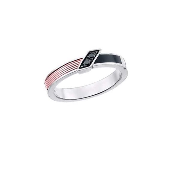 Anello da uomo in argento 925/°°° con riporto in oro e onice , al centro sono incassati 2 spinelli nero in diagonale. misura 24
