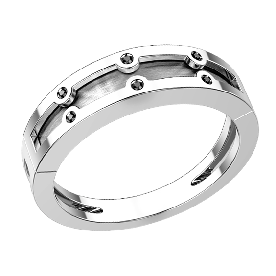 Anello da uomo in argento tipo fedina con 6 spinelli neri in testata al n°20
