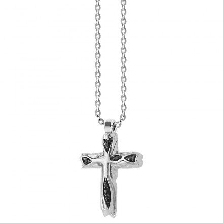 Collana da uomo in argento 925/°°° con pendente a forma di croce con incassati spinelli neri